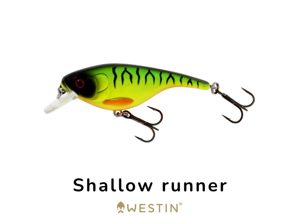 Plitkoroneći (Shallow Runner) crankbait. Neutralno izbalansiran (suspending) - kada prestanete s namatanjem, ne tone prema dnu niti se izdiže prema površini. Zaron: 1-2 m.